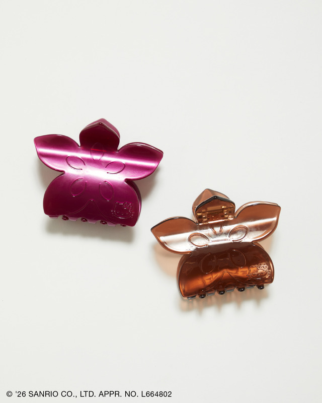 「ヘアクリップ」は、どこか懐かしさを感じ、90年代のムードを感じるフラワーモチーフのヘアクリップ。立体的な花のフォルムに、ブランドイニシャルと右下にハローキティが寝ているフェイスを添えたレトロガーリーな一品。ヘアクリップとしてはもちろん、トートバッグやミニバッグの持ち手につけてバッグチャームとして取り入れてもトレンド感がありおすすめだ。