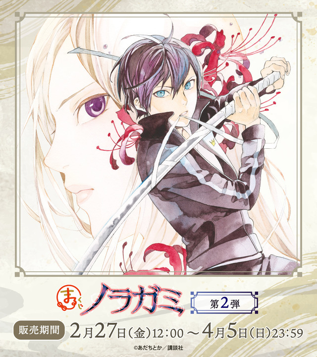 マンガ『ノラガミ』がオンラインくじサービス『まるくじ』に登場。新規オリジナルグッズを購入できる待望の第2弾が発売中だ。