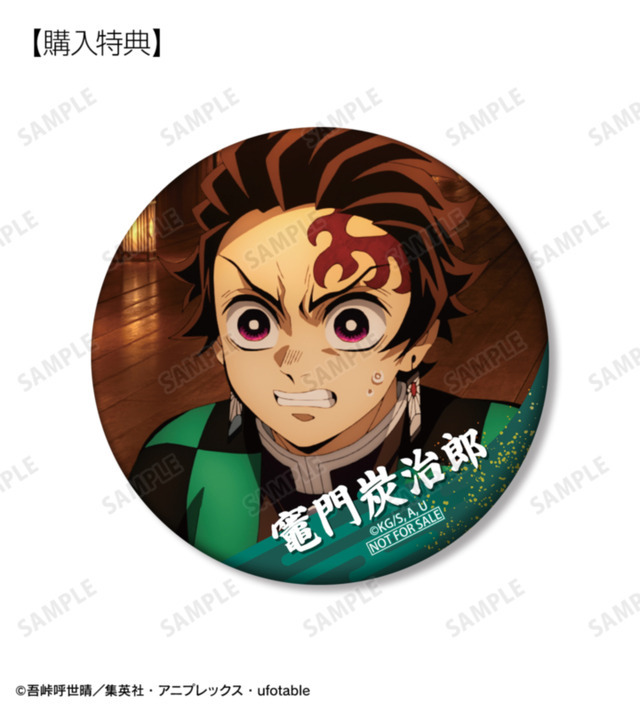予約購入特典として、当商品を1BOX、または単品にて1BOX相当数注文ごとに、予約購入特典として「竈門炭治郎 場面写75mmマット缶バッジ AMNIBUS限定特典」が付属される。