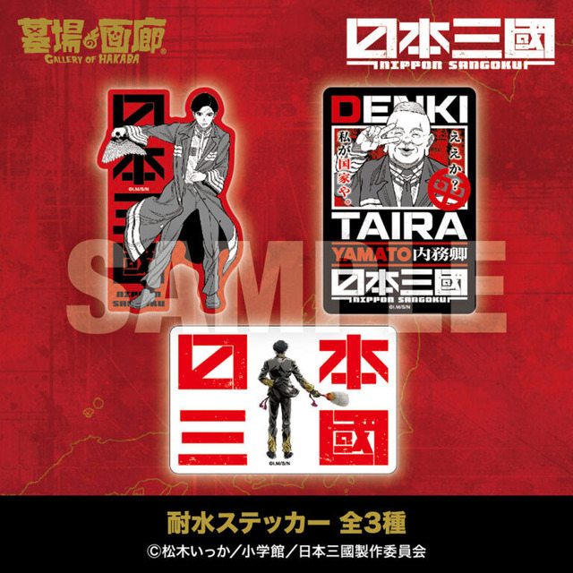 印象深いタイトルロゴやキャラクターを配したTシャツなど定番のアパレルグッズから、人気のアクリルスタンドやステッカー、墓場の画廊ならではの個性溢れるオリジナルアイテムが一斉挙兵。ファン待望の『日本三國』新作グッズの販売が、いま幕を開ける!