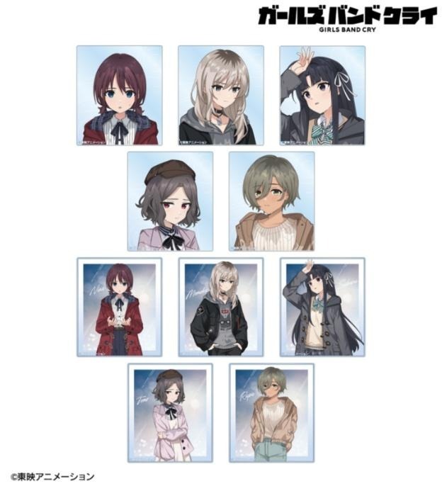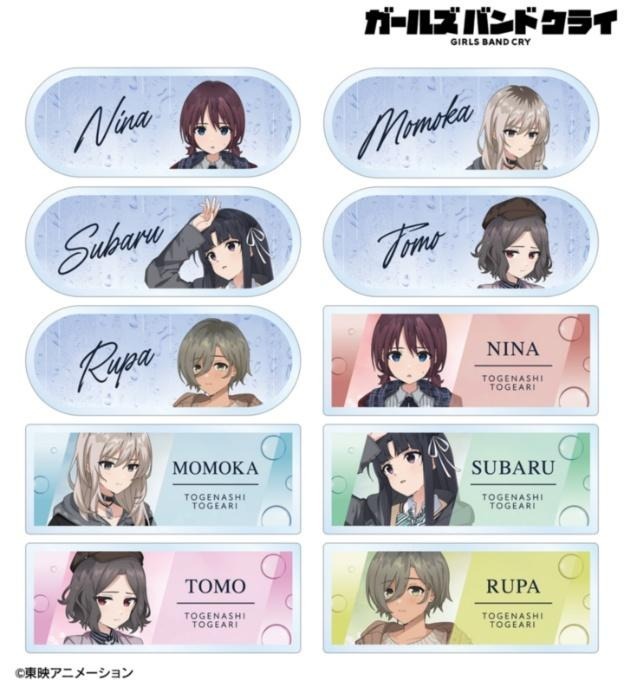 『ガールズバンドクライ』より雨をイメージした新商品が予約受付中。井芹 仁菜、河原木 桃香、安和 すばる、海老塚 智、ルパの東映アニメーション新規描き下ろしイラストを使用している。