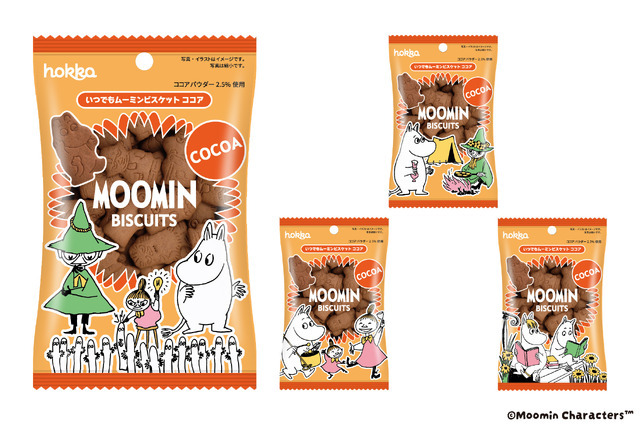 「いつでもムーミンビスケット(ミルク/ココア)」は、サクッと軽やかな食感が特長のビスケット。ムーミンのキャラクターたちをかたどった全11種類の形があり、パッケージデザインもそれぞれ4種類。60分の1の確率で出会える“ご先祖さま”の形が入っていれば、より嬉しくなること間違いなしだ。