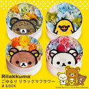 リラックマ、コリラックマ、キイロイトリたちが、丸いボックスや四角いフレームの中でバラやカーネーションに包まれながらのんびりする姿は心がほっこりと癒される。