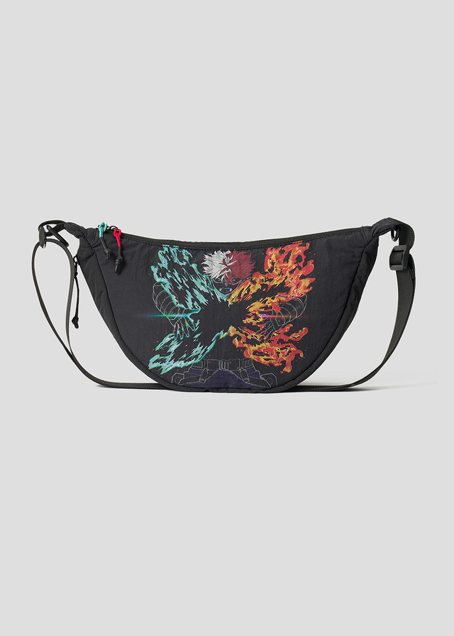 赫灼熱拳“燐”を繰り出す轟焦凍をデザインし、幼少から今に至るまでの軌跡がジッパーを開けた底にプリントされている。本体の底部分に拡張ファスナーを設け、荷物に応じて容量を変えることも可能だ。