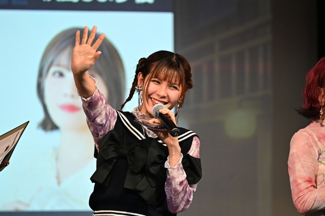 Machicoは「勇気を出すひより」のセリフに挑戦。繊細で思いのこもった一言に、観客は思わず聞き入る。アニメでは別人格・でんみちゃんとしての出番が多かったことから「ひより自身の言葉もゲームでたくさん聞ける」とゲームでのひよりの活躍をアピールする場面も。
