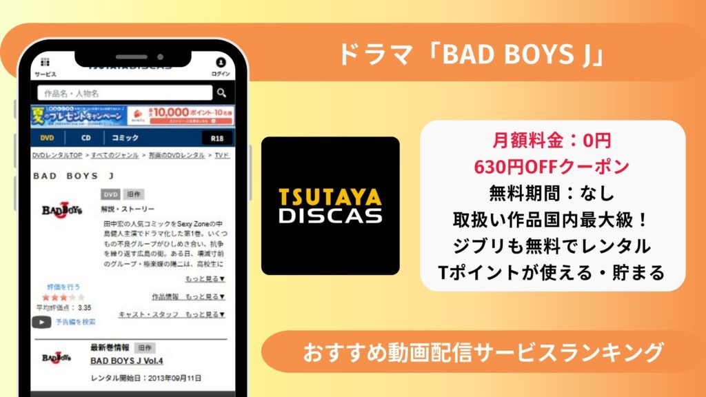 知りたいことまでジャンプ ドラマ「BAD BOYS J」どこで見れる?無料視聴できる? 【30日間無料】TSUTAYA DISCASでドラマ「BAD BOYS J」をDVDレンタルできる?→無料DVDレンタルあり U-NEXTでドラマ「BAD BOYS J」で配信されている?→配信なし ドラマ「BAD B... -