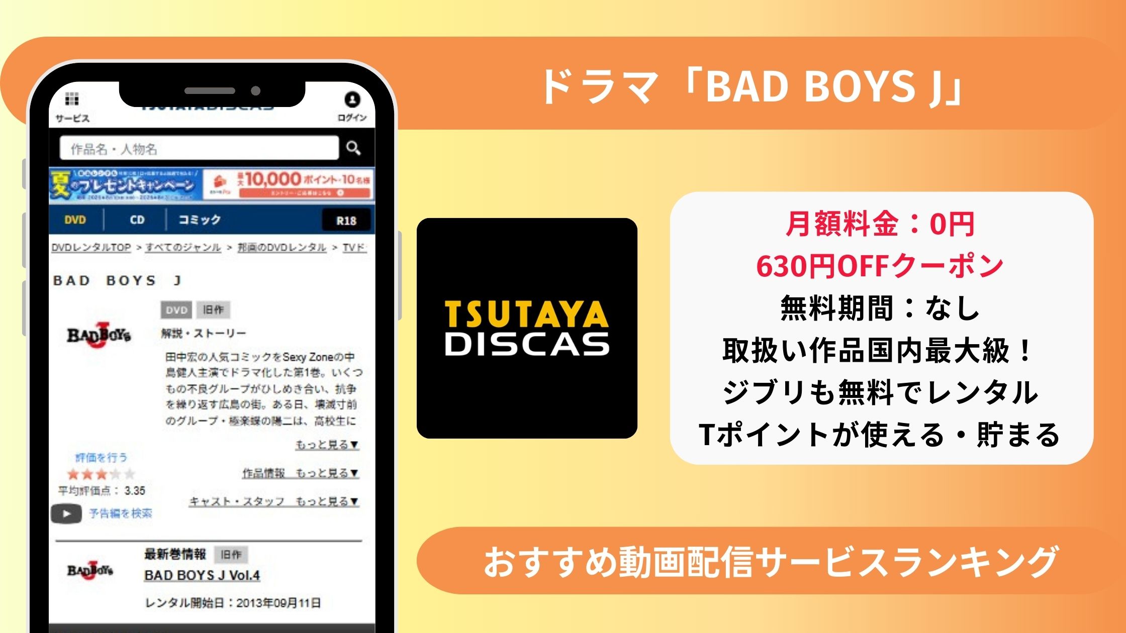 - 【30日間無料】TSUTAYA DISCASでドラマ「BAD BOYS J」をDVDレンタルできる?→無料DVDレンタルあり