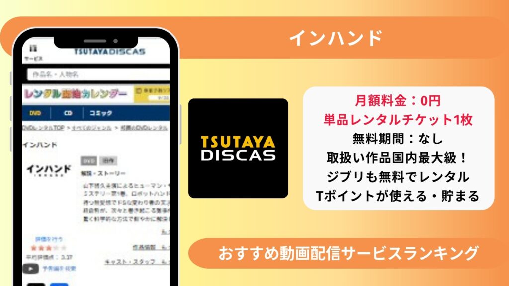 知りたいことまでジャンプ ドラマ「インハンド」が視聴できるサブスクはどこ?→TSUTAYADISCASの無料DVDレンタルあり ドラマ「インハンド」はU-NEXT・Amazonプライム・Hulu・Netflix・TVerで動画配信はある?→配信なし ドラマ「インハンド」の1話から最終話... -