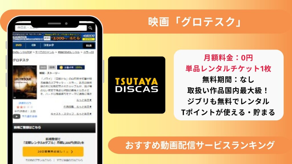 知りたいことまでジャンプ 映画「グロテスク」の動画を無料で見れるサブスクは?→TSUTAYADISCASの無料DVDレンタルあり 映画「グロテスク」はAmazonプライムビデオ・Netflixで配信はある?→配信なし 映画「グロテスク」の配信動画を違法サイトで見るのは危... -