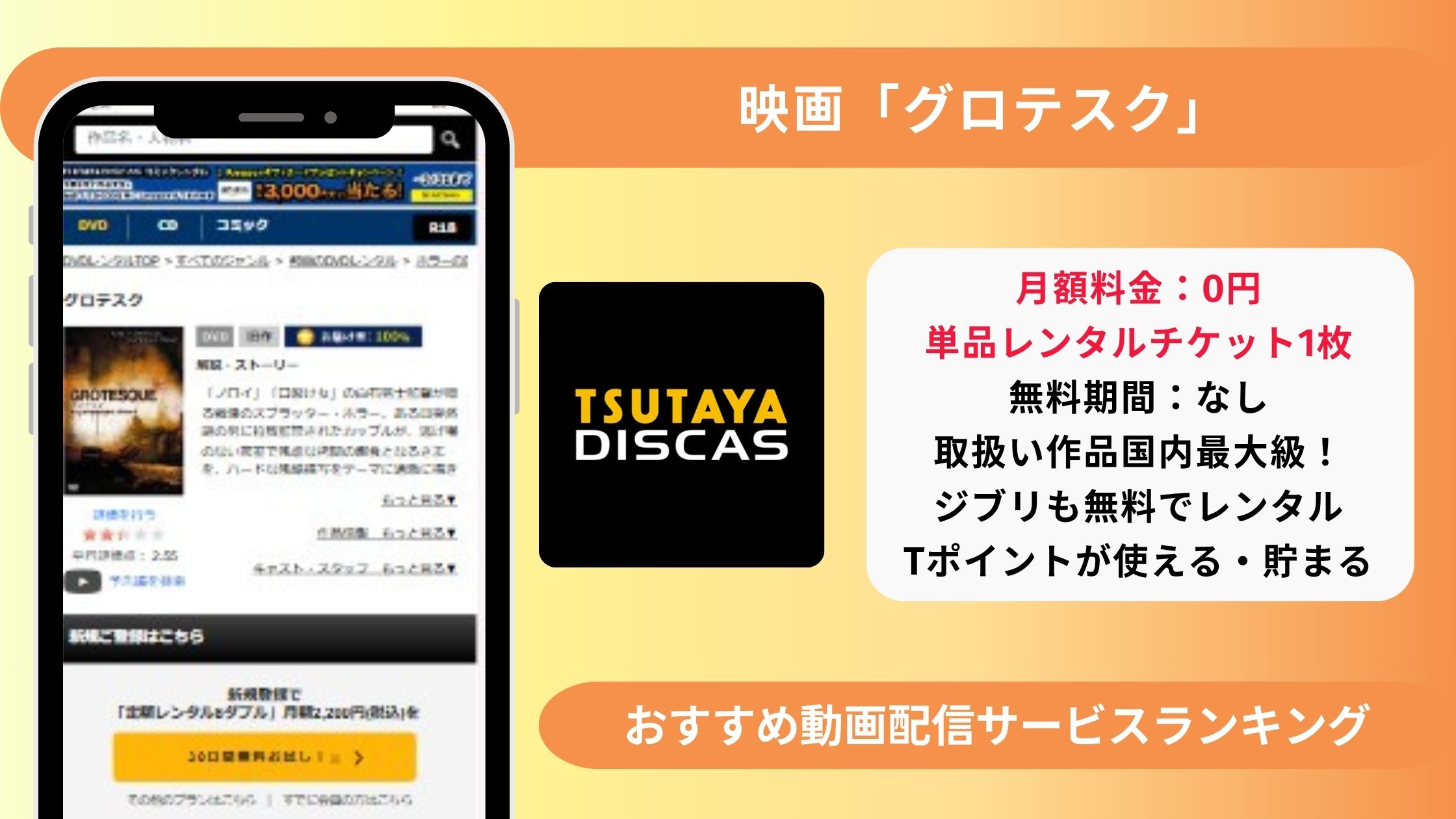 現在、映画「グロテスク」を無料視聴できるサービスは、TSUTAYADISCASです!
