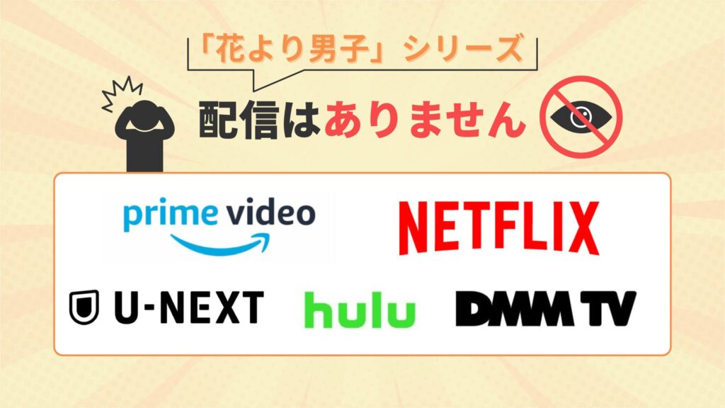 U-NEXT・Netflix・Amazonプライム・Hulu・DMMTVでは、残念ながら2025年10月現在、「花より男子」全シリーズの配信はありません。