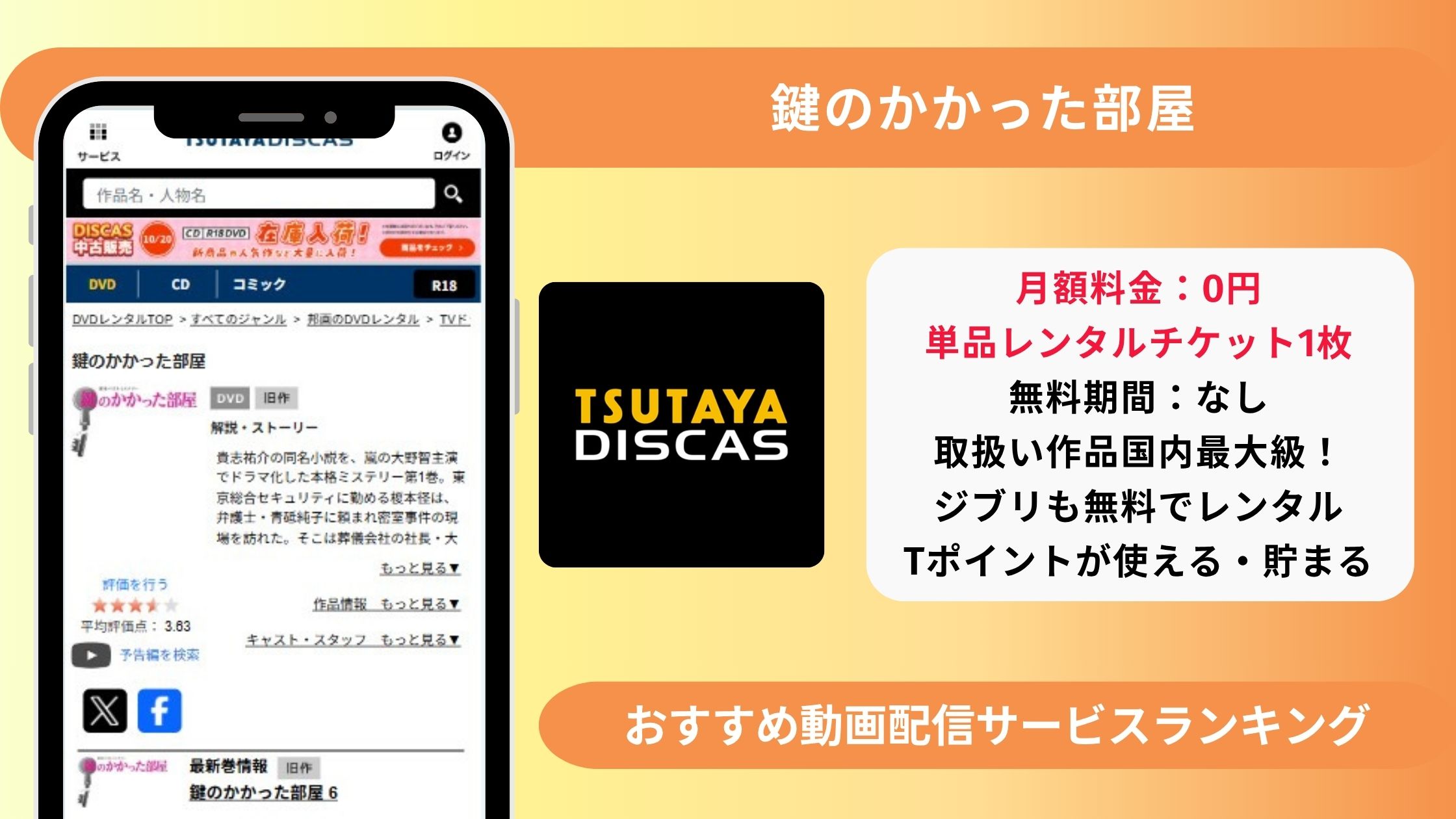 現在ドラマ「鍵のかかった部屋」を視聴できるのは、「TSUTAYA DISCAS」のみとなっています。