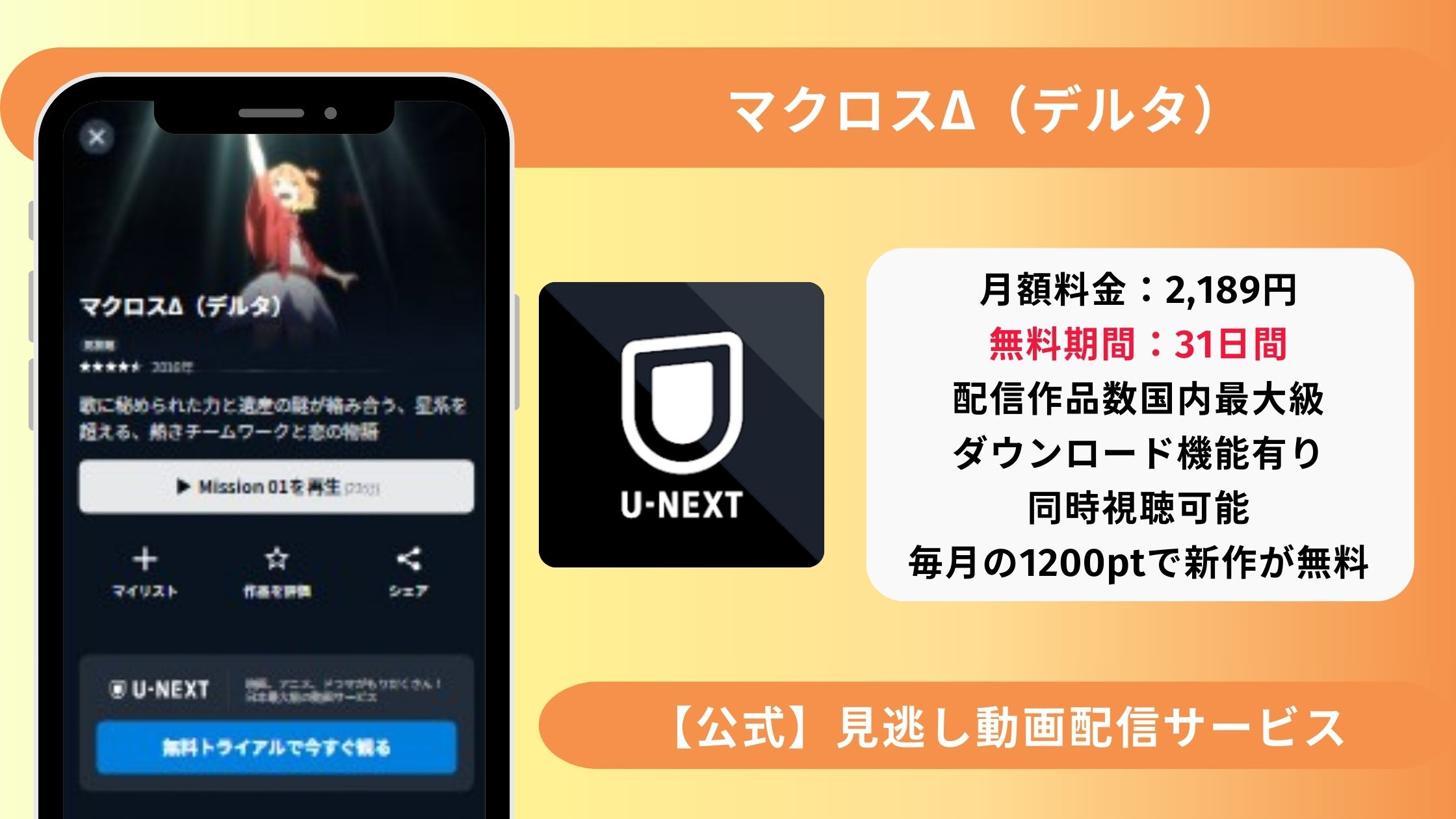 結論から言うと、現在アニメ「マクロスΔ(デルタ)」を全話無料で視聴できるのは、「U-NEXT」です。