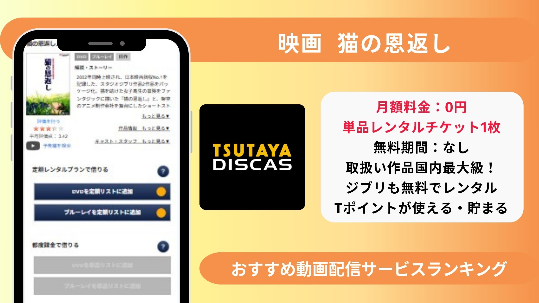 ジブリ映画「猫の恩返し」を最もお得に視聴するには、TSUTAYA DISCASを利用することをおすすめします。