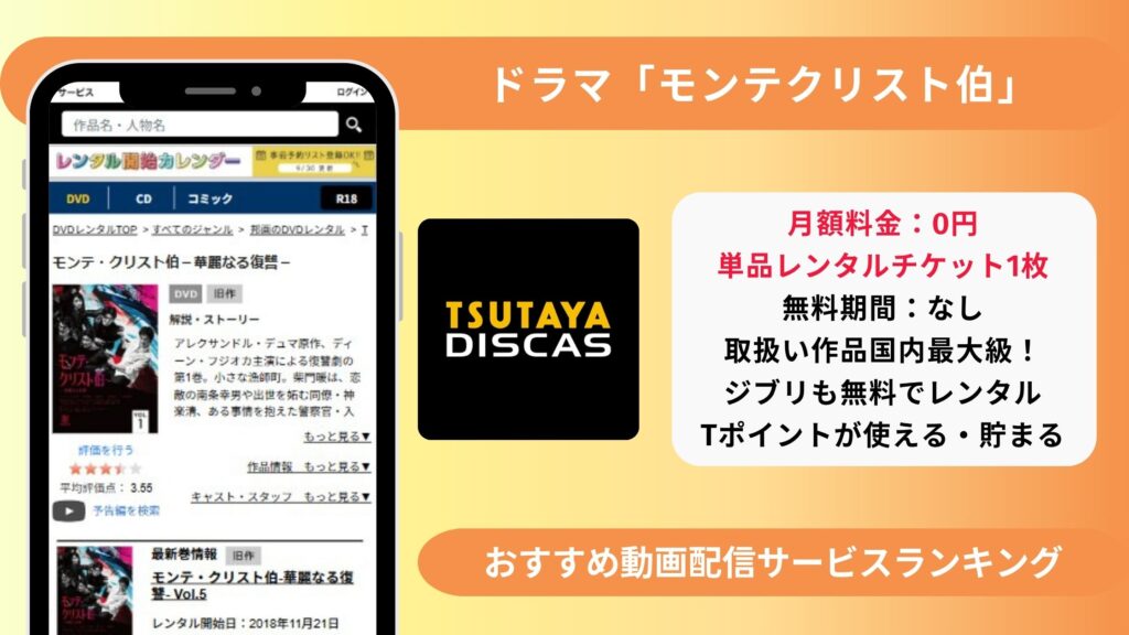 ドラマ「モンテクリスト伯」を全話視聴できる動画配信サイトはどこ?