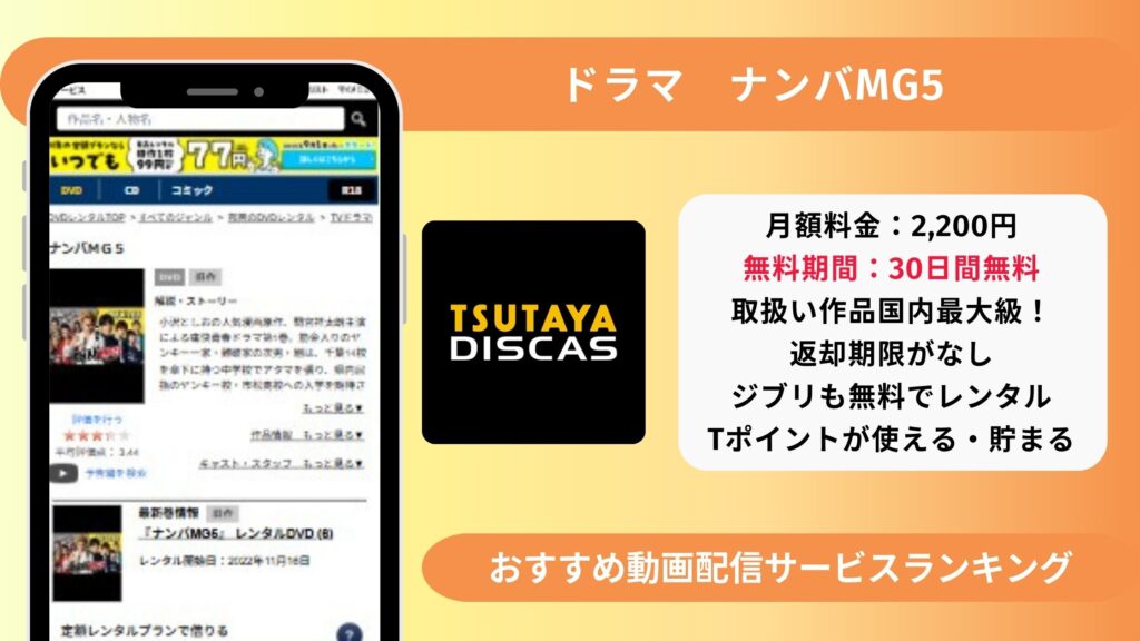 知りたいことまでジャンプ ドラマ「ナンバMG5」が視聴できるサブスク一覧→TSUTAYA DISCASの無料トライアルで視聴可能 ドラマ「ナンバMG5」はFODで配信ある?→配信あり ドラマ「ナンバMG5」はアマゾンプライムで配信ある?→配信あり(FODチャンネルに有料登... -