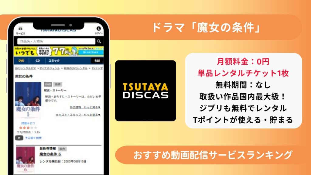 https://www.youtube.com/watch?v=o1sUaVJUeB0 知りたいことまでジャンプ ドラマ「魔女の条件」をTSUTAYADISCASのDVDレンタルで視聴できる?→TSUTAYADISCASで全話視聴できる ドラマ「魔女の条件」はNetflix・Amazonプライムで無料で視聴できる?→配信なし ...