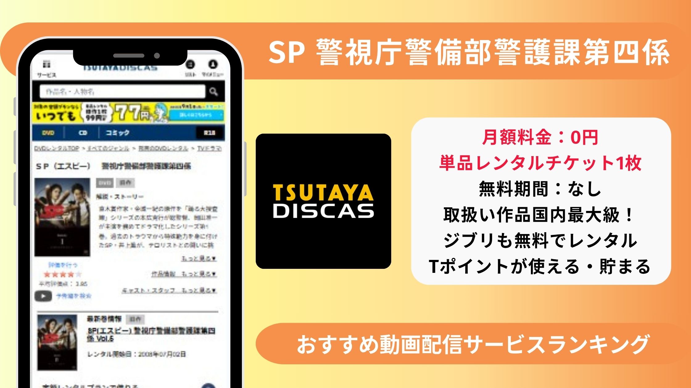 - ドラマ「SP 警視庁警備部警護課第四係」を全話無料で視聴できるの動画配信サイトはどこ?→TSUTAYADISCASの無料DVDレンタルあり